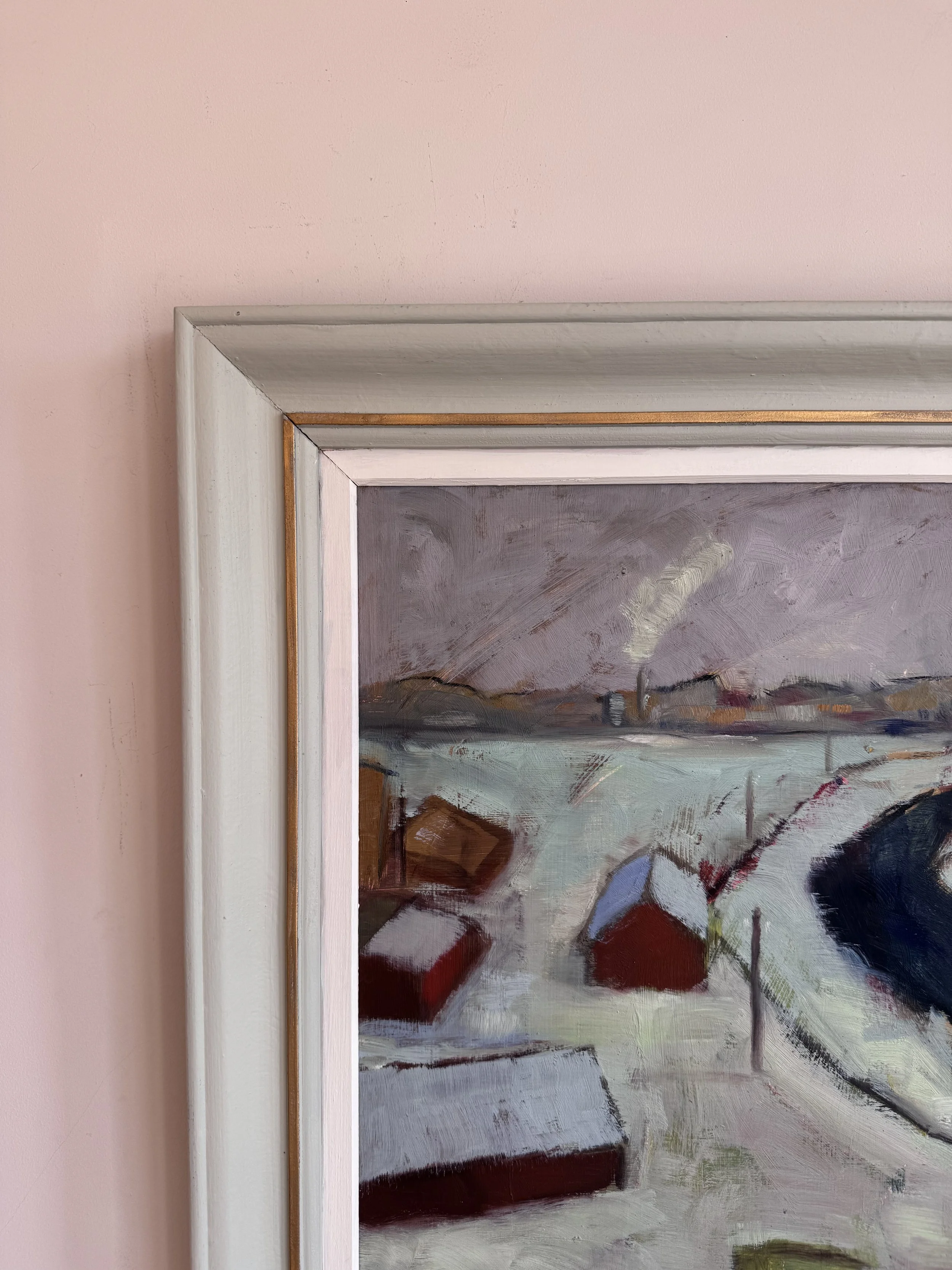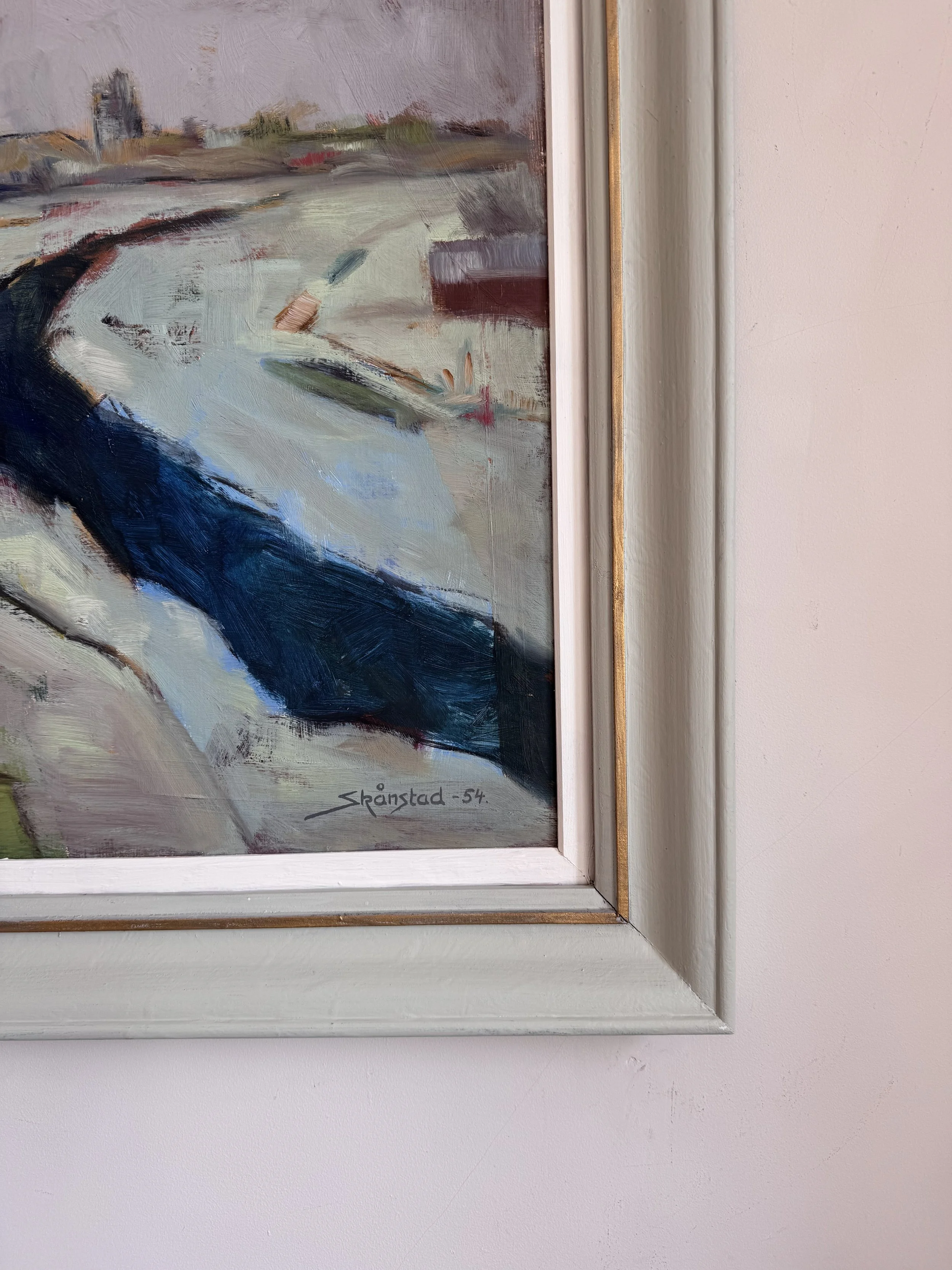 Image 1 of 5 Image 2 of 5 Image 3 of 5 Image 4 of 5 Image 5 of 5 Stockholm Landscape £595.00 A midcentury oil on board dated ‘54.71 x 62cm including frame Add To Cart Added! A midcentury oil on board dated ‘54.71 x 62cm including frame